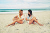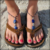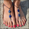 High gloss clear beading with frosted white and sapphire blue spacers. Made with high quality elastic cording. US shoe size SM 5-6, MED 7-8 and LG 9 and up. Model is wearing size Medium.
